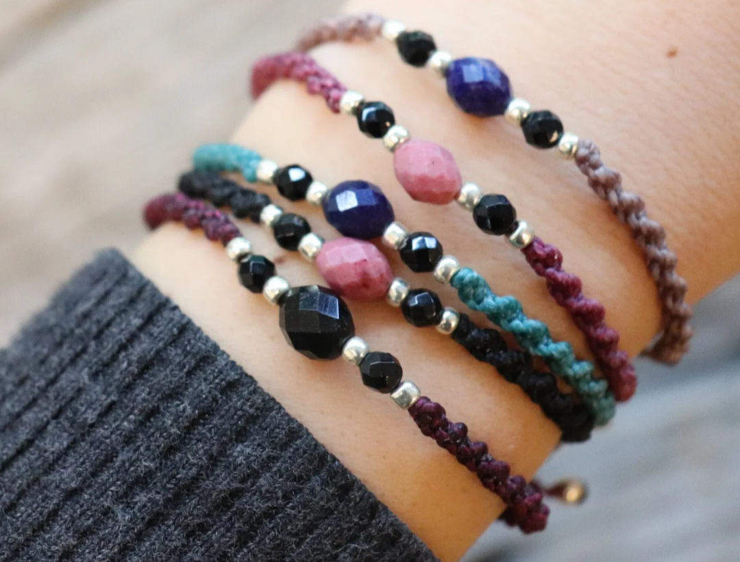 La creazione delle prime collane Porta Pietre con la retina, inizialmente per me, e poi per gli altri, è stato il punto di partenza di un percorso che, nel tempo, si è ingrandito e arricchito di nuove collezioni e significati: dalle collane, bracciali, orecchini e mala della collezione Kòosmos, ai gioielli con le pietre realizzati con la tecnica del micro macramé della collezione Nympha.