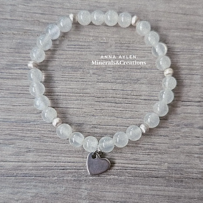 • Bracciale Selenite Argento 925 e Cuore in Acciaio