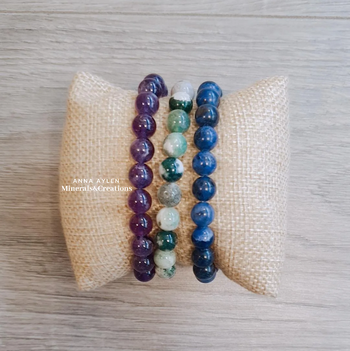 Bracciali con pietre da 8mm, con elastico resistente