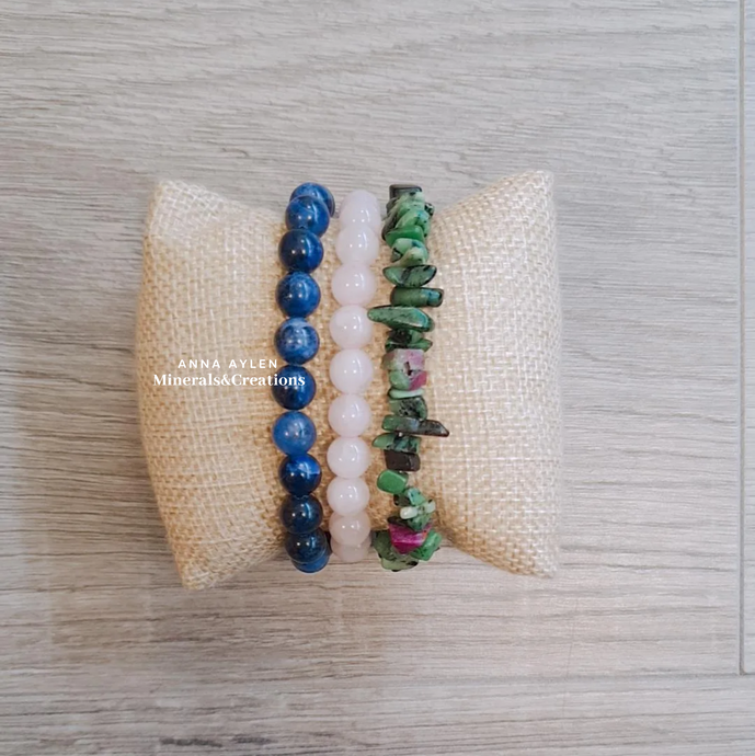 • Tris di Sodalite, Quarzo Rosa e Ruby Zoisite