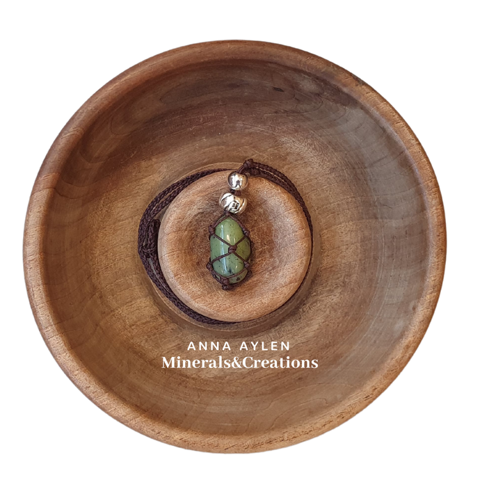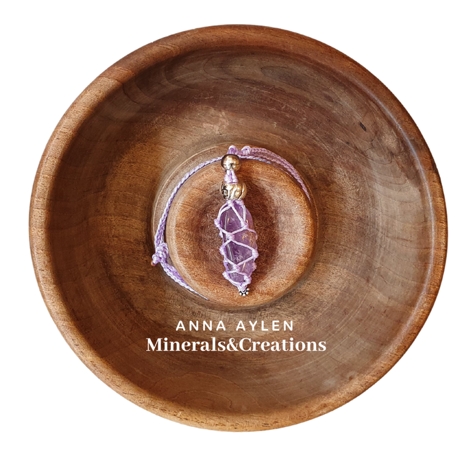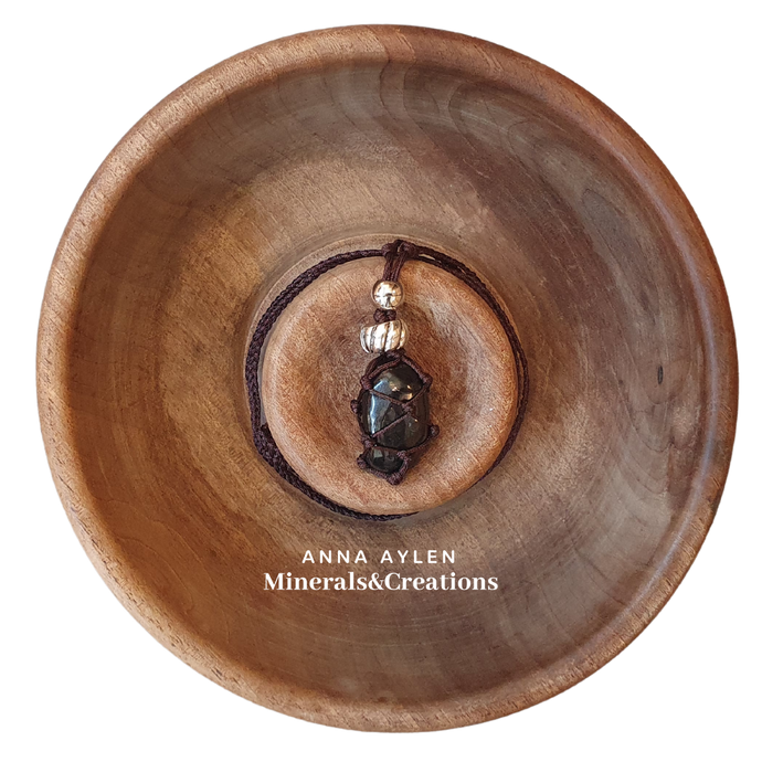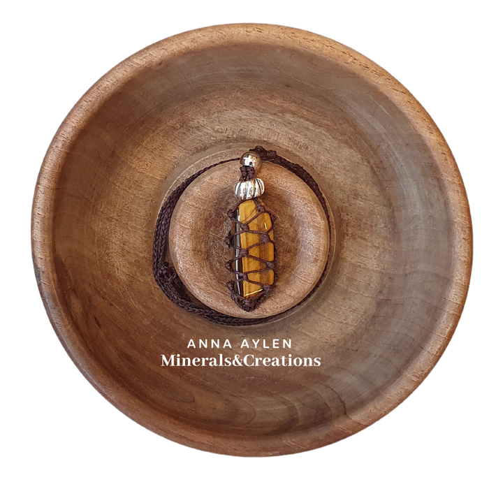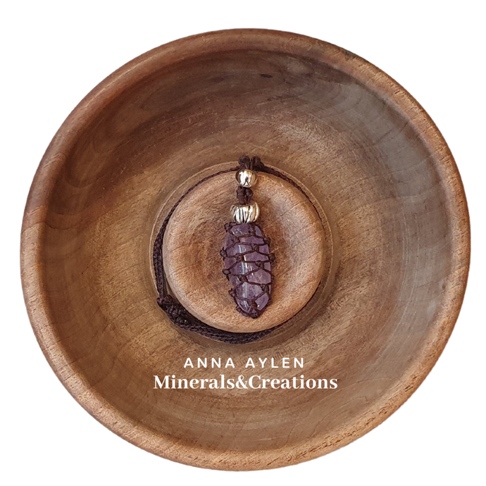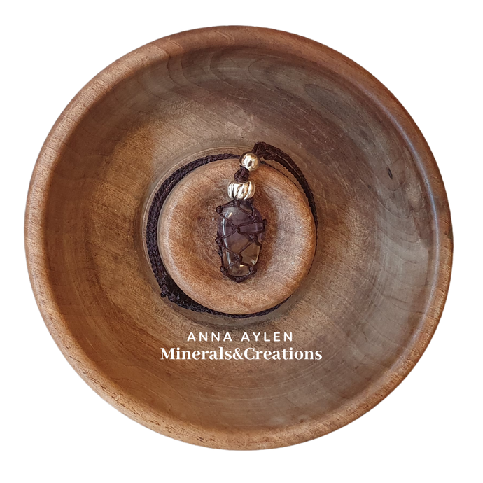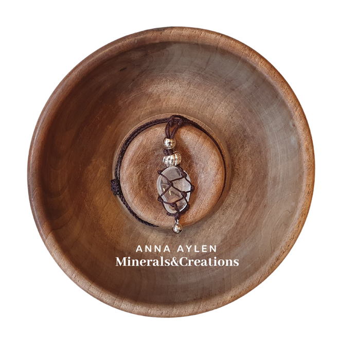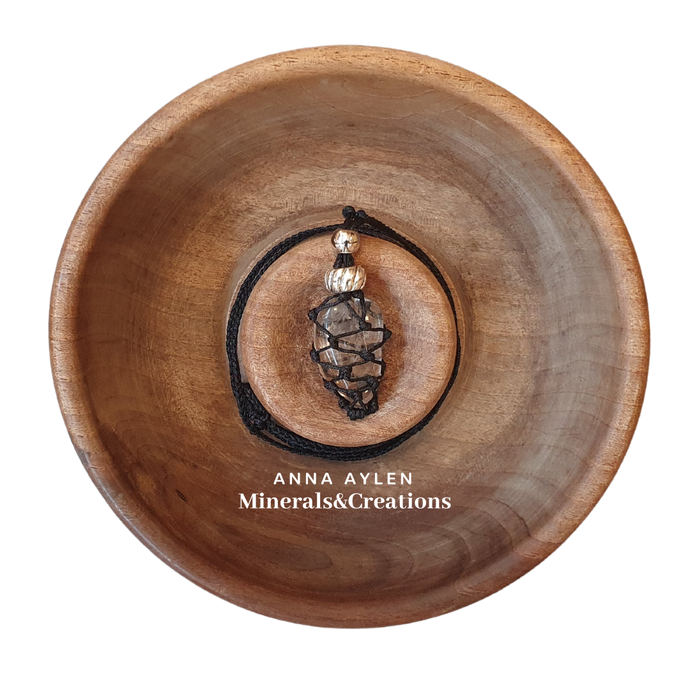 Collana My Aura filo marrone, Cristallo di Rocca, campanellino