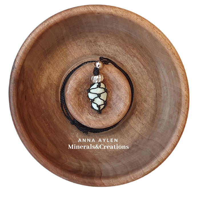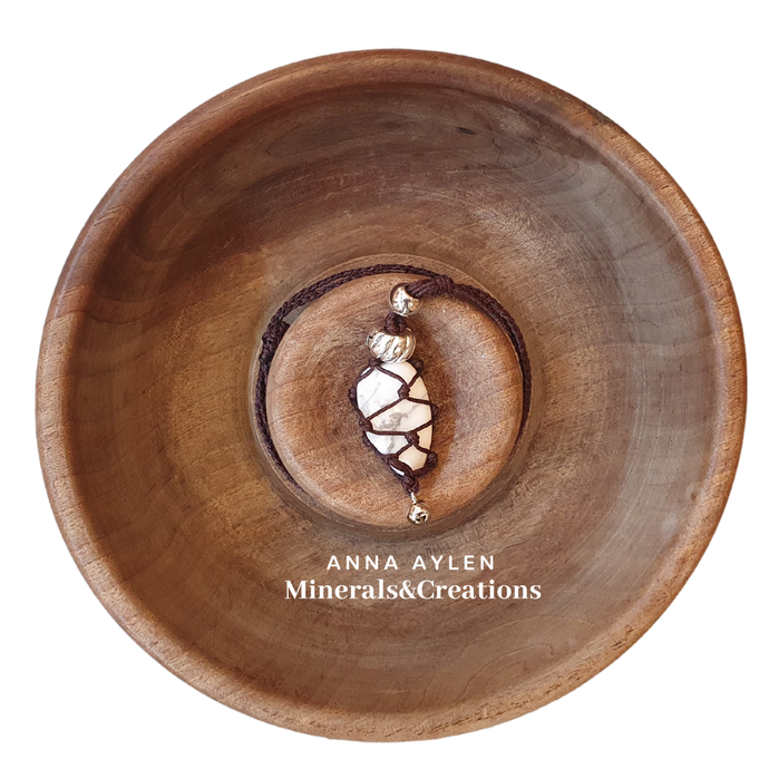 Collana My Aura filo marrone, Howlite Bianca, campanellino