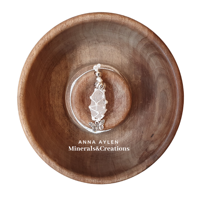 Collana My Aura filo bianco, Cristallo di Rocca, farfalla