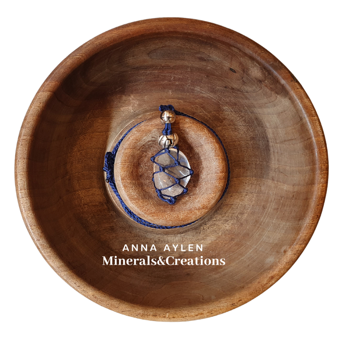 Collana My Aura filo blu scuro, Cristallo di Rocca