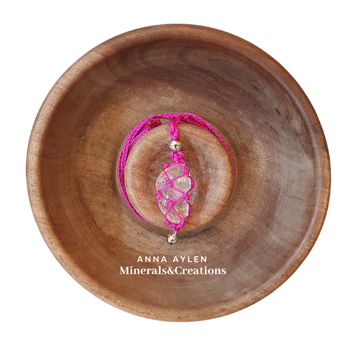 Collana My Aura filo fuxia, Cristallo di Rocca, punto luce