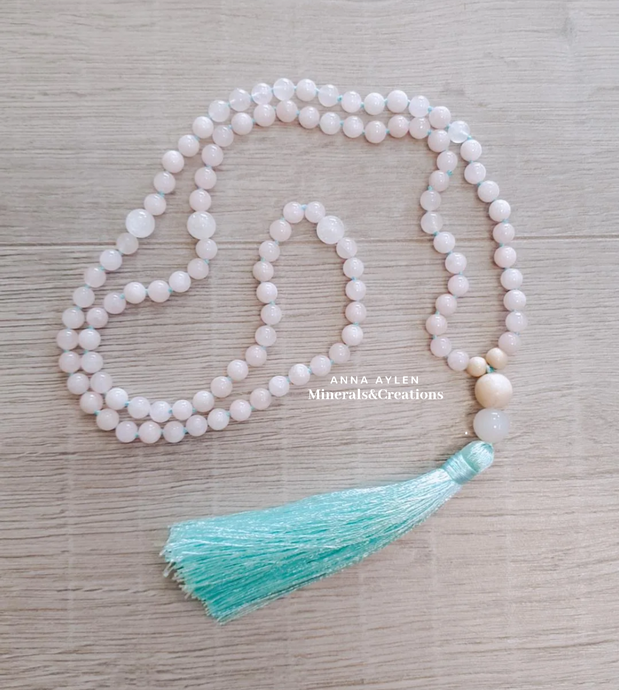 Mala Quarzo Rosa Agata Bianca